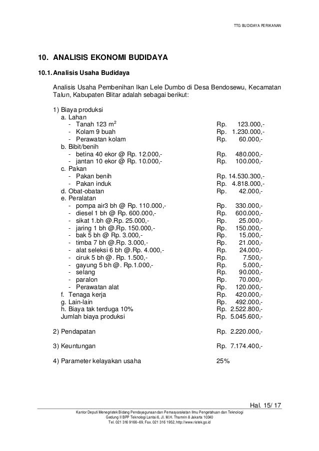 Harga lele di tempat saya di pasar 28.000/kg kalok di agen 20.000. Analisis usaha budidaya lele ala william perkasa model kolam terpal, tebaran benih 10.000 ekor Sistem bioflok ini ternyata juga bisa dijalankan dengan modal kecil, di tempat terbatas, dan dengan jumlah benih yang lebih sedikit. Sebagai gambaran awal sebelum anda memulai menjalankan usaha ternak ini, anda bisa menyimak terlebih dahulu mengenai analisa modal dan laba ternak lele per 1000 ekor dibawah ini. Di indonesia sendiri ada banyak jenis peternakan atau budidaya yang bisa dilakukan. Analisa budidaya lele 1000 ekor ini menunjukan bahwa keuntungan bisnis lele masih menggiurkan dan masih digeluti banyak orang. Dari analisa usaha budidaya lele sistem bioflok untuk 10.000 ekor benih lele di atas, tentu banyak juga yang bertanya, apakah harus menebar 10.000 ekor benih? Termasuk ternak ikan lele di rumahan. Oct 14, 2018 · 100 kg benih ikan nila = 8.000 ekor ikan nila, dengan asumsi 10% tak bisa dipanen akibat faktor hambatan yang terjadi di lapangan, sehingga yang dapat dipanen mencapai 90% x 8.000 = sebanyak 7.200 ekor ikan nila. Inilah untung rugi ternak lele yang wajib diketahui peternak pemula. Keuntungan ternak lele per 1000 ekor. Mar 03, 2020 · analisa budidaya lele 10.000 ekor. Gimana kalok kita pelihara ikan lele 10.000 ekor bisa dihitung sendiri hasilnya.